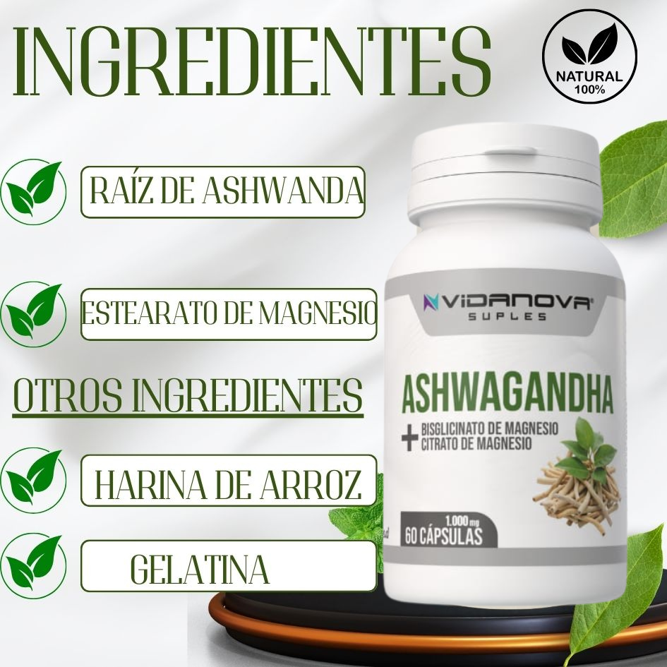 Adiós estrés,🍃ASHWAGANDHA + MAGNESIO 100mg 60caps + Guía Bienestar de regalo
